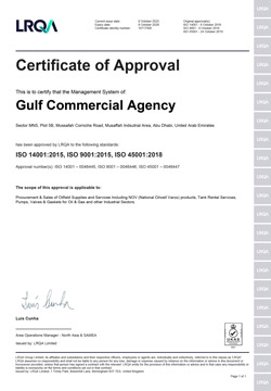 GCA has established and is maintaining an Integrated Management System which is a combination of a Quality Management System model ISO 9001:2015 Standard, an Occupational Safety and Health Management System model ISO 45001:2018 standard and an Environmental Protection Management System model ISO 14001:2015 standard. All These Quality and Environmental Management Systems are already certified by Lloyd's Register Quality Assurance, thus paving the way to Total Quality Management and Business Excellence.